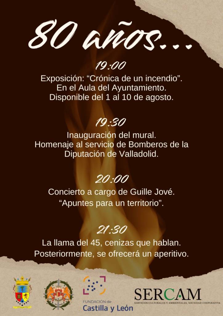 La jornada conmemorativa contará con una cuidada programación que entrelaza historia, arte, música y memoria colectiva. A las 19:00 h, se inaugurará en el Ayuntamiento la exposición “Crónica de un incendio”, que recopila documentos, imágenes y testimonios del suceso. A continuación, a las 19:30 h, se celebrará el acto inaugural del mural conmemorativo creado por el artista Daniel Martín, una obra que quedará como recuerdo permanente en el espacio que ahora ocupa el pabellón municipal y que aun hoy se conoce como “Las casas quemadas” lugar donde se originó el incendio.