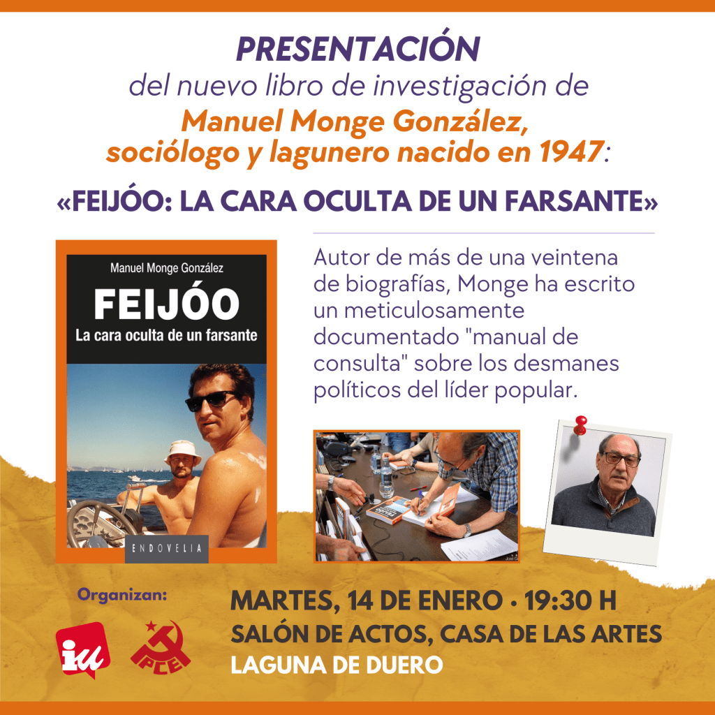 Se presenta en nueve municipios de la provincia de Valladolid el libro «Feijóo: La cara oculta de un farsante», de Manuel Monge, sociólogo vallisoletano afincado en Galicia Izquierda Unida y el Partido Comunista de España… Read more